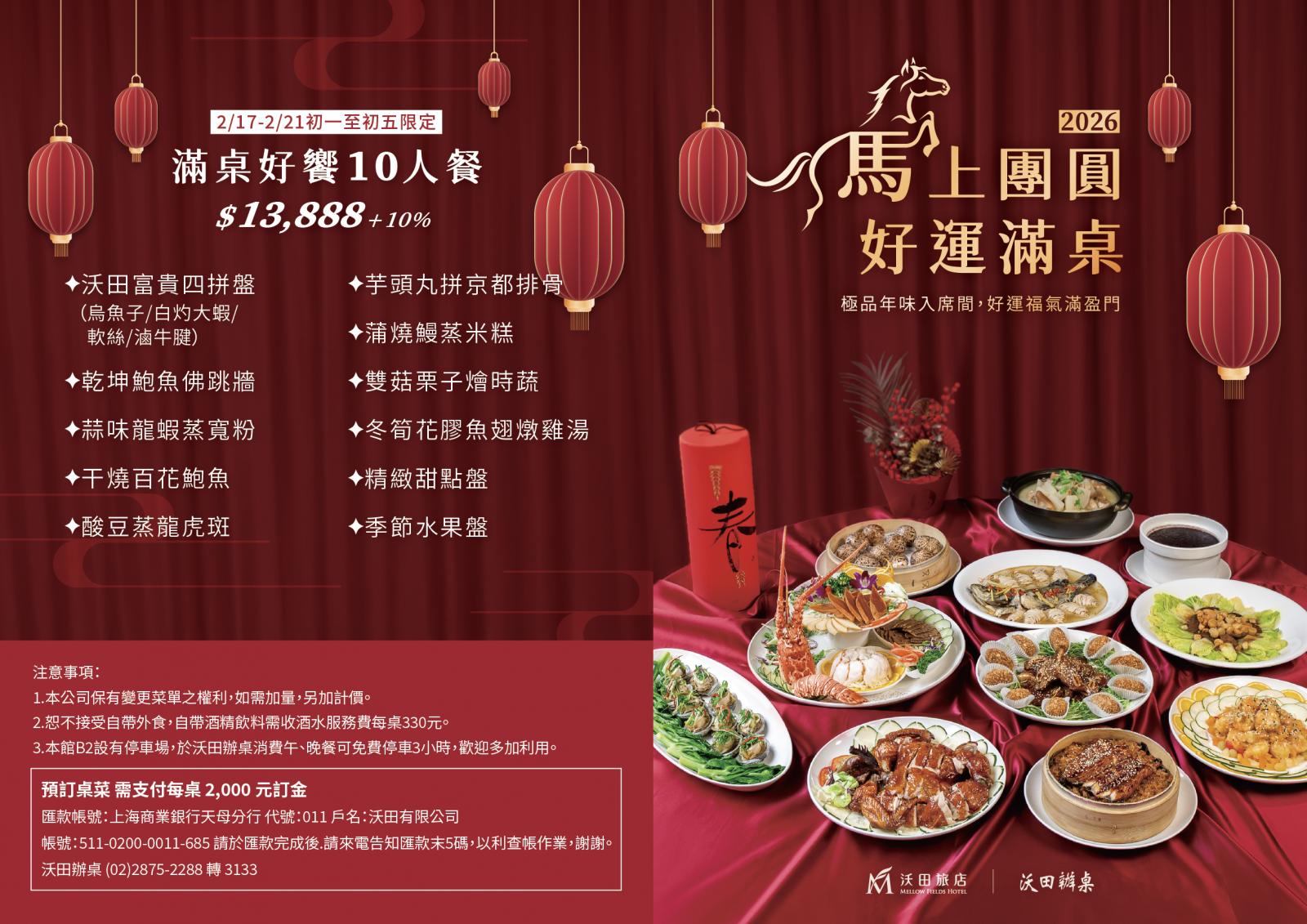 除夕圍爐、春節團圓,首推沃田辦桌!